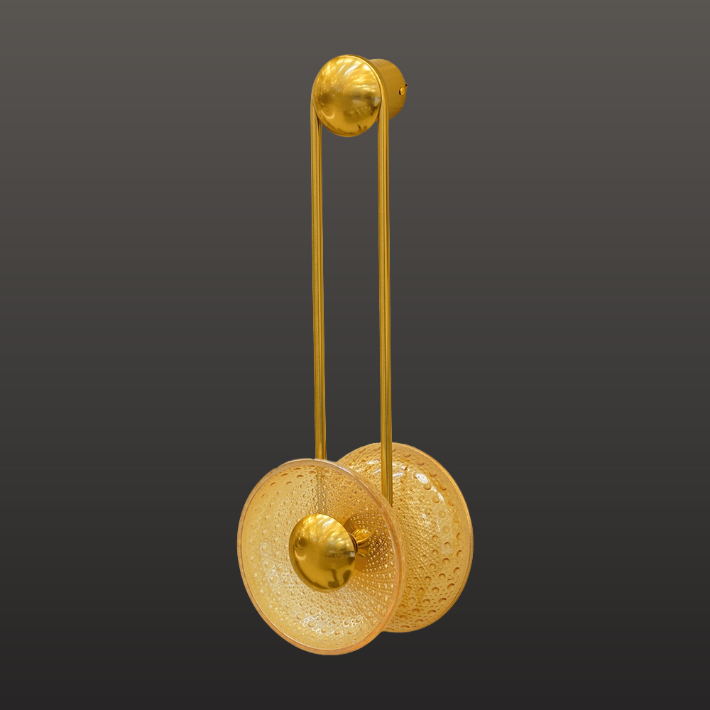 يتميز هذا الإبليك بموزعين دائريين من الكريستال الشبكي، متصلين بإطار ذهبي أنيق، ليشكّل تصميمًا متوازنًا وفاخرًا. تتألق ظلاله المزخرفة بدقة عند إضاءتها، موزعةً الضوء بوهج جذاب، مما يجعله مثالياً لغرف الاستقبال، غرف المعيشة، غرف النوم، أو الممرات. تصميمه العصري والفني يضفي لمسة راقية على أي مساحة داخلية.